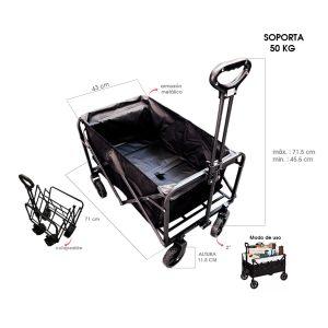 CARRETA MULTIUSOS CON FRENO 87X49X27CM 100KG QK-334