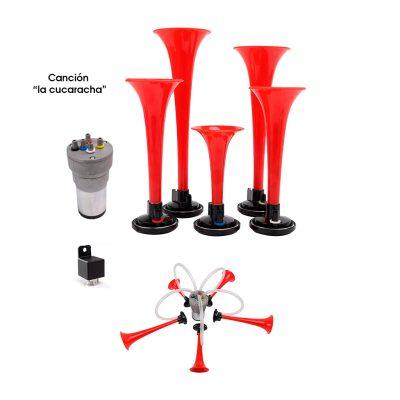 BOCINA AIRE 5 TROMPETAS 12V ROJA LA CUCARACHA CD-020312