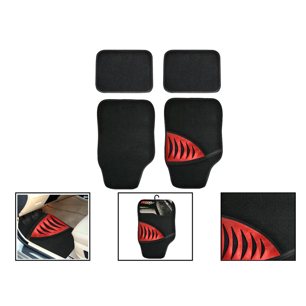 ALFOMBRA P/CARRO FELPA NEGRA C/ ROJO 4PCS CM-54RD