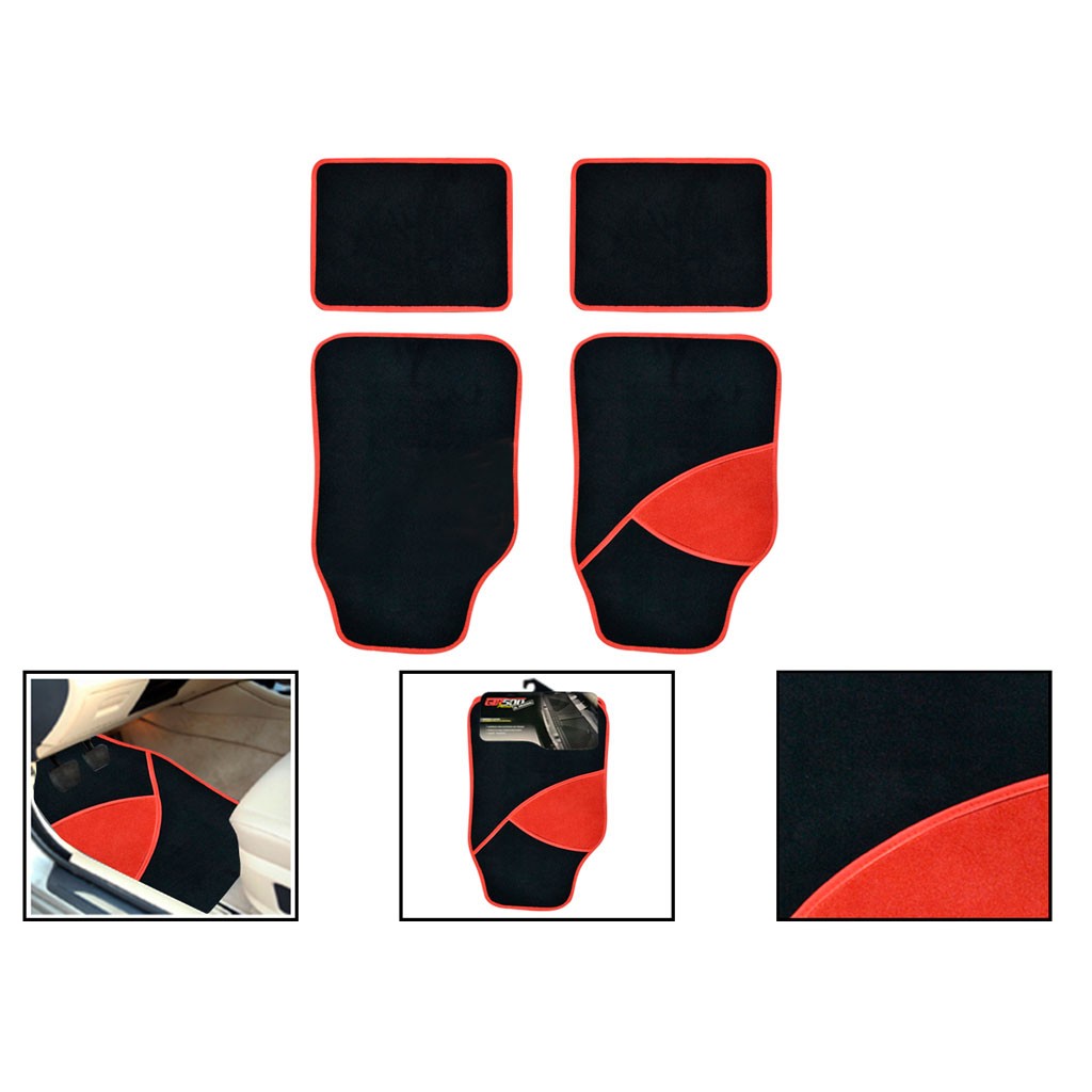 ALFOMBRA P/CARRO FELPA NEGRA ROJA 4PCS CM-61RD