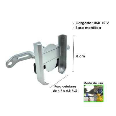PORTA CELULAR P/MOTO METALICO C/CARGADOR SILVER AL TIMON CD-3301 C/CARGADOR