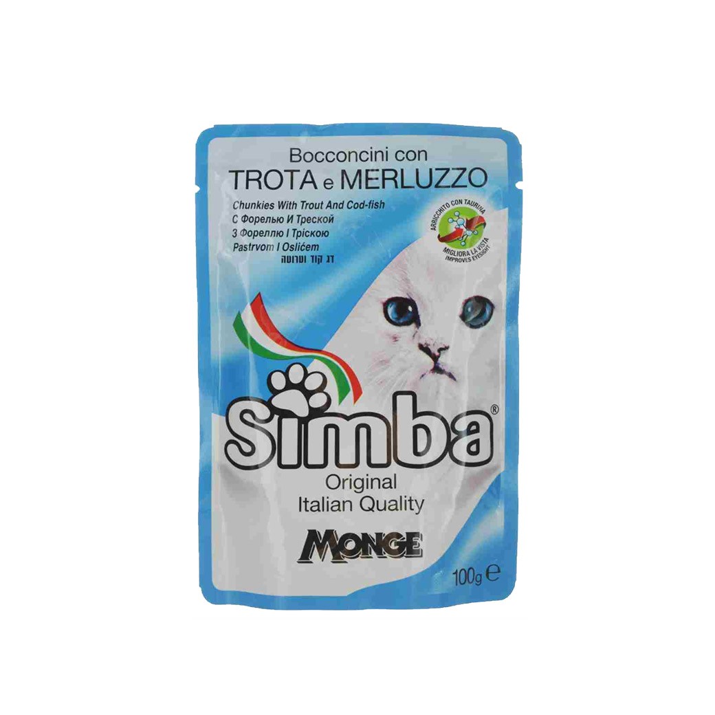 COMIDA PARA GATO SIMBA PESCADO TROTA Y MERLUZZO 100G