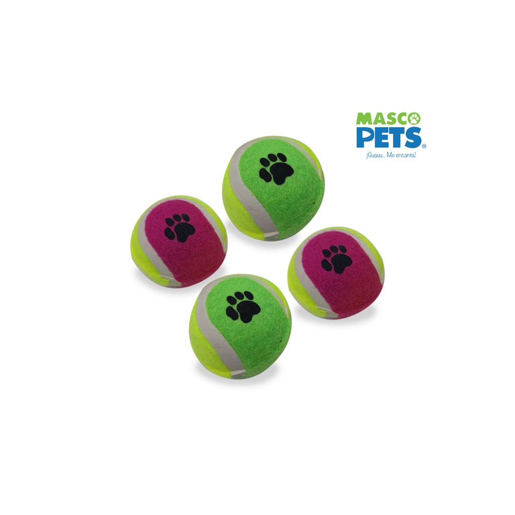JUGUETE 4 MINI PELOTAS 4.5CM DE TENIS MASCOPETS