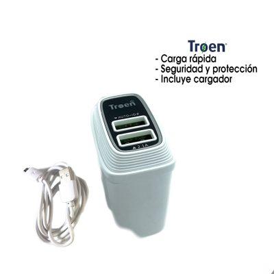 CARGADOR P/CELULAR USB 2 PUERTOS C/CABLE 2.1A TROEN