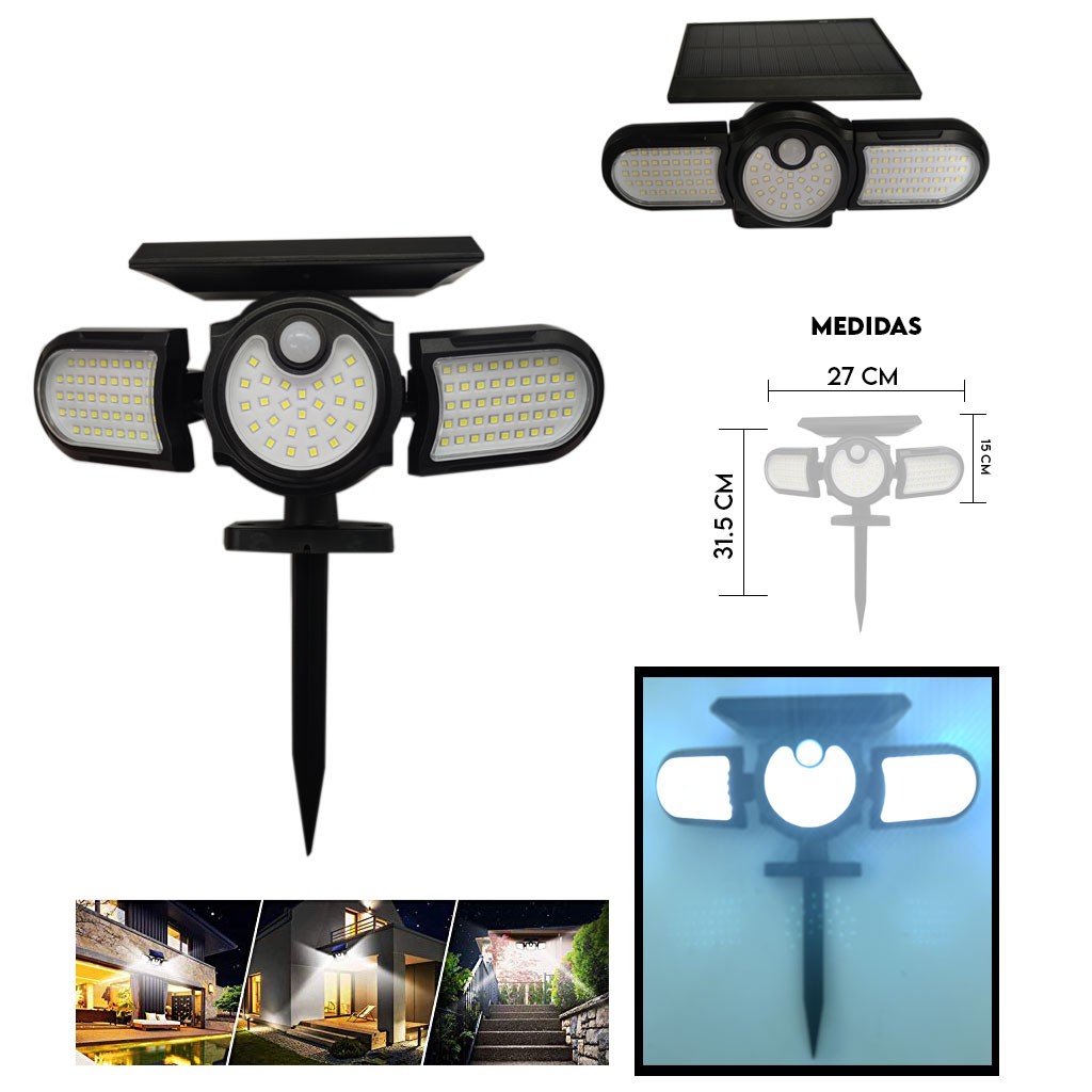 LAMPARA SOLAR ESTACA Y PARED 140 LED 30W 31.5X27CM