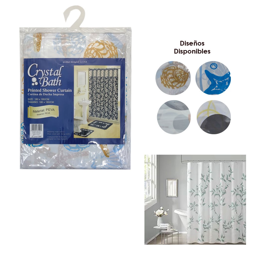 CORTI?A PARA BA?O C/GANCHOS 180X180CM PEVA