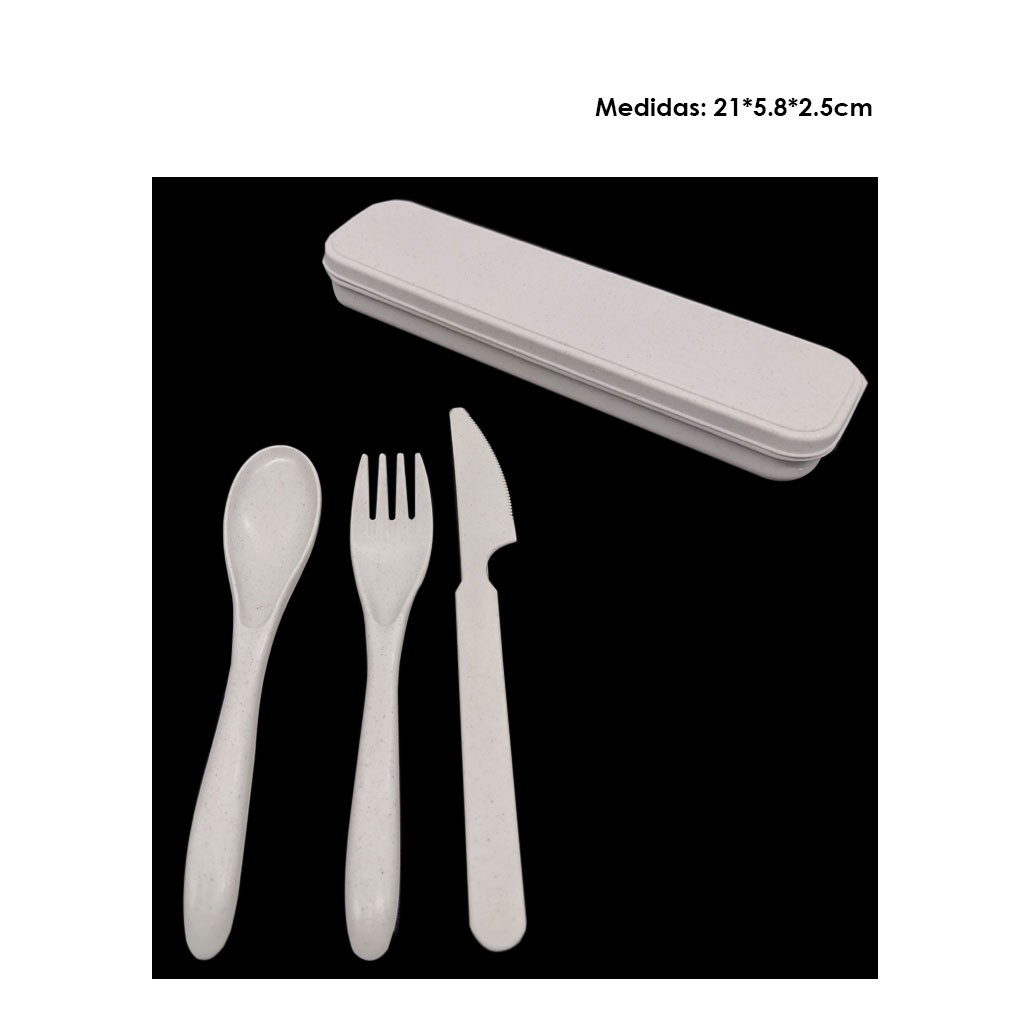 CUBIERTOS PLASTICOS C/ESTUCHE FIBRA DE TRIGO 21X5.8X2.5CM
